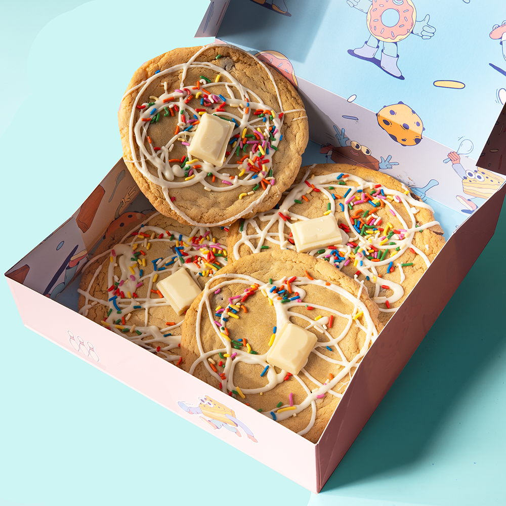 Experience the pure joy of a timeless cookie enhanced with a luxurious white chocolate drizzle, colourful rainbow sprinkles and creamy Milkybar chocolate. Delight in this irresistible delicacy, conveniently packaged in a set of four, ideal for relishing on your own or gifting to those dear to you.