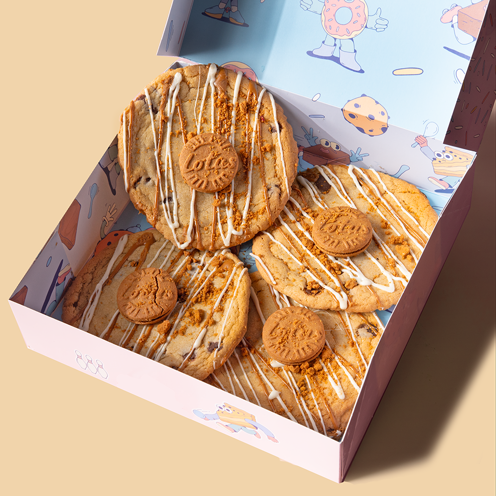 Indulge in the ultimate treat with our 4-box pack of Classic Cookies OG Biscuits. These irresistible, chewy thin cookies are perfectly balanced with a delightful white chocolate and Biscoff® drizzle, adding a touch of sweetness to every bite. Topped with crunchy Biscoff® crumbs and crowned with a whole Lotus Biscoff® biscuit, these cookies offer an exquisite combination of textures and rich flavours. Whether you’re treating yourself or sharing with others, these biscuits are sure to satisfy any sweet craving. Enjoy the perfect blend of classic indulgence with every delicious bite.