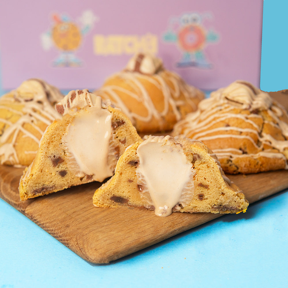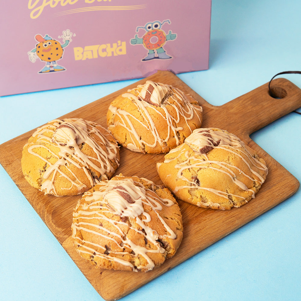 Treat yourself to our Bueno Stuffed Cookies Box, featuring four irresistible chocolate chip cookies, each filled with a rich hazelnut chocolate spread for the ultimate indulgence. Topped with a crispy Bueno bar, these cookies combine the perfect balance of soft, chewy cookie dough and the creamy, nutty goodness of hazelnut chocolate. With every bite, you'll experience a mouth-watering blend of chocolate and hazelnut, making these cookies a must-have for anyone who loves the classic Bueno flavour!